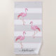Modern Monogram Name Pink Flamingo Grey Beach Towel