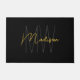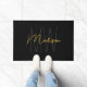 Modern Monogram Name Script Black Gold Doormat