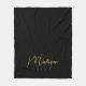 Modern Monogram Name Script Black Gold Fleece Blanket