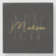 Modern Monogram Name Script Black Gold Stone Coaster