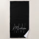 Wrap yourself in style with this Modern Monogram Name Script Beach Towel, featuring personalised initials and a custom name in an elegant script font. This soft, absorbent towel is perfect for beach days, poolside lounging, or spa visits. A great personalised gift for birthdays, weddings, or summer vacations.