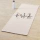 This modern minimalist yoga mat features an elegant monogram and name in stylish script calligraphy on a neutral beige background. It is easily customizable.
