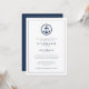 Modern Monogram Nautical Wedding Invitation with ship anchor in navy blue and white is idea for a marina, ship, sea, beach or coastal wedding.