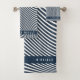 Modern Monogram Navy Blue and White Stripe Pattern Bath Towel Set