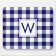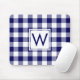 Modern Monogram Navy Blue & White Gingham Pattern Mouse Pad