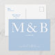 Contemporary White Monogram Peacock Blue Save the Date. Wedding. First and Last Names. Modern. Simple.