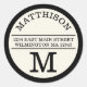 A modern design on a round sticker makes a contemporary statement on your cards and letters. Personalised with your name in arched text above and with your single initial below, address in the middle is bordered by two straight lines. Perfect for home or business.