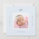 Share your news with this modern yet timeless birth announcement. Featuring a clean monogram and a delicate pinstripe background, this minimalist card allows your newborn's photo to take centre stage. The versatile back includes space for multiple pictures and a sweet message, making it perfect for use as both a birth announcement and a baby shower thank you card. Available in multiple colorways to perfectly suit your little one's style.