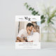 This save the date announcement card features a modern monogram of the couple's initials accenting a single photograph. The save the date details, including the wedding date and wedding location, are displayed below the photo. The back of the save the date card has a place to write a message and add a postcard stamp.