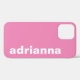 This phone case is modern and trendy! It's classic combination of pink and white is crisp and clean. The font is chunky and bold. It is super easy to make your own - just select Personalise this template and type in your name. It's that easy!