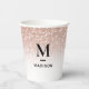 Modern Monogram Pink Rose Gold Glitter Ombre Name Paper Cups