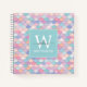 Modern Monogram Pretty Mermaid Powder Blue Sketchbook Notebook. Personalised notebook. Features mermaid scales pattern with glitter effect. Pattern vector designed by brgfx.