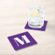 Modern monogram purple violet and white custom initial letter or number typography party Square Paper Coasters. Customisable white text on purple violet colour background. All colours are editable. You can customise it with a number, year, initial, letter, monogram, family monogram. These are great for birthday parties and house celebrations.