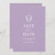Announce your engagement with these wedding monogram save the date invitations. They feature the bride and groom's monogrammed initials in an elegant crest over a solid lilac colour background. Use the template fields to add your personalised text. An elegant choice for weddings and bridal showers. To see the complete wedding invitation suite visit www.zazzle.com/dotellabelle
