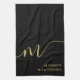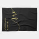 Modern Monogram Script Calligraphy Black Gold Name Tea Towel