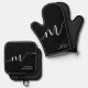 Modern Monogram Script Calligraphy Black White Oven Mitt & Pot Holder Set