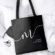 Modern Monogram Script Calligraphy Black White Tote Bag