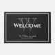 Modern Stylish Monogram Script Name Chic Cute Wedding Welcome Doormat. Personalised last name monogram initial and bride and grooms last name (surname)and date established on a charcoal grey background. Click personalise this template to customise it quickly and easily. Cute gift for newlyweds. Lovely for their new home together. Ships Worldwide fast.