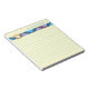 Elegant, modern and trendy customisable notepad features "a note from personalised name" and "personalised monogram" on golden leather badge & pink / blue plaid tartan beneath on Canary lined background.