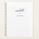 Modern weekly monthly planner. Personalised script name and decorative swash on a white background. Ideal for wedding, business, professional, personal, bridal shower note taking and goal planning. Non-dated, start anytime.
