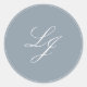 Modern Monogram Simple Script Dusty Blue Wedding Classic Round Sticker