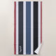 Soak in the sun in style with this stylish modern beach towel featuring a stiped design in black, white, blue and red. Personalise it by adding your own graphics or text with the Design Tool. One text line is provide in white text for your monogram, name or special quote.