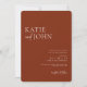 Invite your friends and loved ones to your modern boho wedding with this rustic vibe invitation with calligraphy lettering and terracotta background. Personalise the wedding details and monogram at the back.