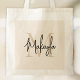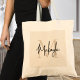 This modern tote bag features a monogram and name in stylish script calligraphy on a neutral beige background. It is easily customizable.