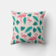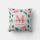 Modern Monogram Tropical Leaves Hot Pink Flamingo Throw Pillow