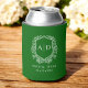 Modern Monogram Wedding Emerald Green Crest Can Cooler