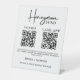 Modern Monogram wedding honeymoon fund QR code Pedestal Sign