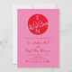 Modern, minimalist, simple, contemporary bright red and pink wedding invitation with unique monogram hand drawn couple love birds, RSVP and QR code at the back.