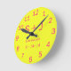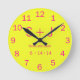 This yellow and pink Modern Monogram clock features the bride and groom's initials, names, and the date of their wedding.