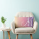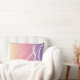 This modern lumbar pillow features a minimalist design with a white oversized monogram on a colourful yellow, pink, and purple gradient background.