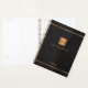 Luxury exclusive looking monogrammed stylish personalised planner featuring a faux gold copper metallic glitter square and lines over a stylish classy black leather look background. +++++++++ Personalise it with your text, your name and monogram initials.