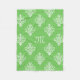 Modern Monogrammed Bright Green Damask Pattern Fleece Blanket