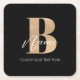 Modern Monogrammed Initial B & Name Personalised Square Paper Coaster