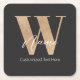 Modern Monogrammed Initial W & Name Personalized Square Paper Coaster