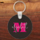 Stylish monogram initial and your first name in chic pink and white lettering on black are featured on this fun key chain.