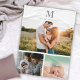 Modern monogrammed photo collage Grey & white Fleece Blanket