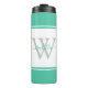 Girly modern minimalist script personalised trendy monogrammed thermal tumbler. The elegant mint stylish script matches the line design in colour but offsets it in style, creating a fun twist to the minimalist look.