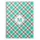 Modern Monogrammed Teal Green Plaid Tartan Pattern Notebook