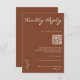 Modern terracotta response card with QR code featuring a twig or leaf type motif. Same design wedding invitation is also available in arched or standard shape at the store.