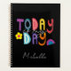 Organise your to-do's in style with this modern and motivational planner! It features an eye-catching design of bold typography in bright colours atop a sleek black background, setting you apart from the rest. The powerful text, "Today is my day", serves as a constant reminder of your potential and motivates you to make the most of your day! Whether you're a student, a busy professional, or just someone who likes to stay organised, the “Today Is My Day” Planner is the perfect tool for you to keep your daily affairs in order and yourself motivated. You can personalise it with your name or remove it.