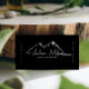 A sleek, modern business card design featuring a hand-drawn mountain illustration paired with an elegant signature name on a dark background. The reverse side includes a clean white layout for contact details, social icons, and a tagline, ideal for professionals who blend adventure with sophistication. Perfect for photographers, tour guides, outdoor brands, and creative entrepreneurs who want a polished yet personal design.