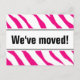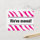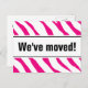 Modern moving postcards with pink zebra stripes. Custom move text; We have moved! Add your new address on the back. Modern new house cards for home and business. Great idea for moving restaurants.