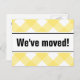 Modern moving postcards with yellow plain design. Custom move text; We have moved! Add your new address on the back. Modern new house cards for home and business. Great idea for moving restaurants.
