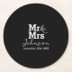 Modern Mr and Mrs Black and White Wedding Round Paper Coaster