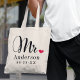 Modern Mr Heart Calligraphy Monogram Tote Bag