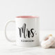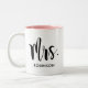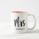 Modern Mrs Calligraphy Pink Monogram Two-Tone Coffee Mug
